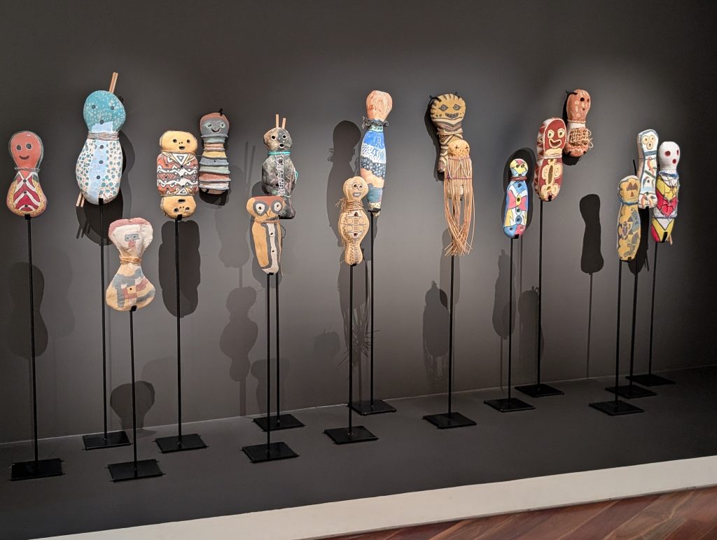 Wooden vessels in the Aboriginal wing of the Art Gallery of New South Wales. These vessels were used to transport burning coals from one end of the rainforest to the other, preserving the fire contained in them.